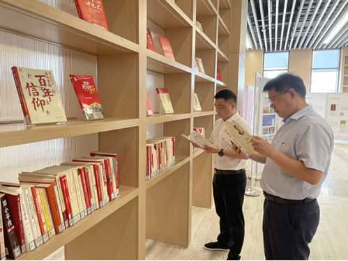 活动在诗歌朗诵《党在我心中》中拉开序幕。机关三支部全体党员满腔热情在齐诵中歌颂中国共产党百年征程的波澜壮阔,展现百年初心的历久弥坚。副经理尹家经、孙细望,经理助理郭明虎带领机关三支部党员在图书馆党建中心参观学习。