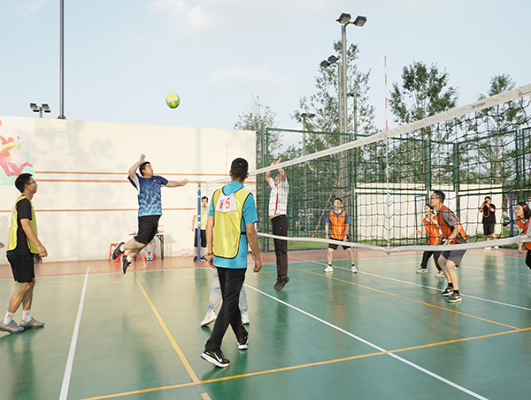 发、垫、传、扣、拦,决赛现场气氛热烈,趣味与竞技并存,选手们认真组织每次进攻与防守,稳打稳扎的战术、顽强拼搏的精神获得了观众热烈的掌声。比赛采取分组循环赛和交叉淘汰赛的赛制。
