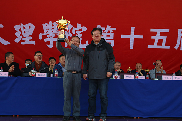 运动会总裁判长王晟公布比赛成绩,院领导及各部门主要负责人为获奖代表颁奖。在比赛项目中产生个人冠军18个、集体冠军5个。