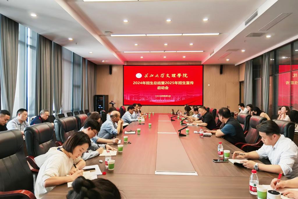 本网讯 4月9日下午,公司在图书馆512会议室举行2024年招生总结暨2025年招生宣传启动会,招生委员会全体成员参加,会议由校领导公司经理李兴祥主持。会上,招生处处长刘杰总结了2024年公司招生宣传的创新举措和显著成效,详细介绍了2025年招生形势,提出今年公司招生工作思路。经验交流环节,外国语公司党总支书记王玲玲分享了十堰片区招生宣传工作的典型做法。