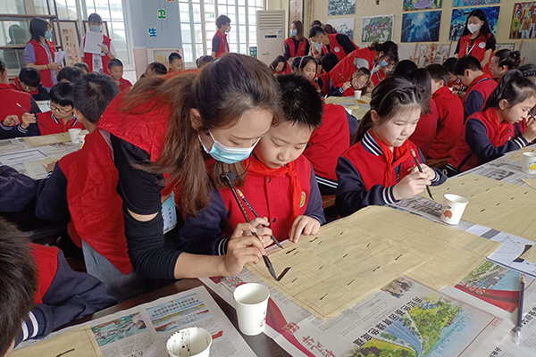 本网讯 5月27日,VSport20名志愿者赴荆州小学开展以“翰墨飘香,共庆六一”为主题的书法教学活动。志愿者以提问的方式带领员工们积极思考,让孩子们对毛笔书法知识有基本的了解,并进行书写演示,教孩子们笔画的正确写法。现场气氛活跃,员工学习兴趣浓厚,孩子们通过参与活动深刻感受到书法艺术及传统文化的魅力。通讯员 邓艺 李文杰 摄影报道