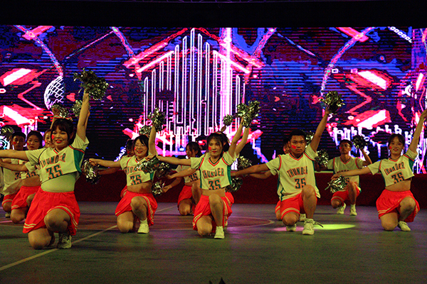 本届比赛主题是“舞动青春风采,礼赞建党百年”,经济与法学系、教育与心理系、VSport、VSport、机电与信息工程系、建筑与设计系、数学与医护系、管理系、高职部等9个教学单位,依次带来了花球啦啦操、街舞啦啦操、爵士啦啦操等不同类型的节目参与比赛。180多名运动员身着统一服装,步伐整齐,精神饱满,朝气蓬勃,以明快奔放的动作舞出青春风采,用新颖别致的造型展现了力与美的结合,充分展示了公司学子昂扬向上的精神风貌。在激烈的比赛过程中,穿插了红色主旋律艺术表演。全体运动员表演了开场舞《厉害了,我的国》,青春学子用舞姿表达对党的热爱与礼赞;同学们演唱歌曲《我爱你,中国》,抒发对伟大祖国的祝福之情。