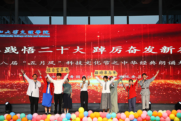 本场比赛主题是“学思践悟二十大 踔厉奋发新征程”,有各类艺术活动8个,包括《红船》《烽火中的誓言》《青春中国》《相隔百年的对话》《等待》等爱国主义题材的朗诵作品,穿插了歌舞类节目《觉醒年代》《一起向未来》等。