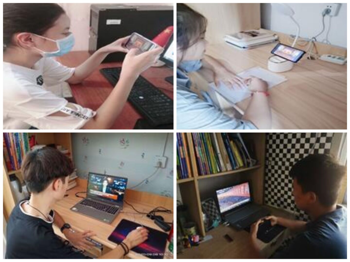 我系教师郭艳凤、胡彩云、孙晗雪、代三妹观看直播