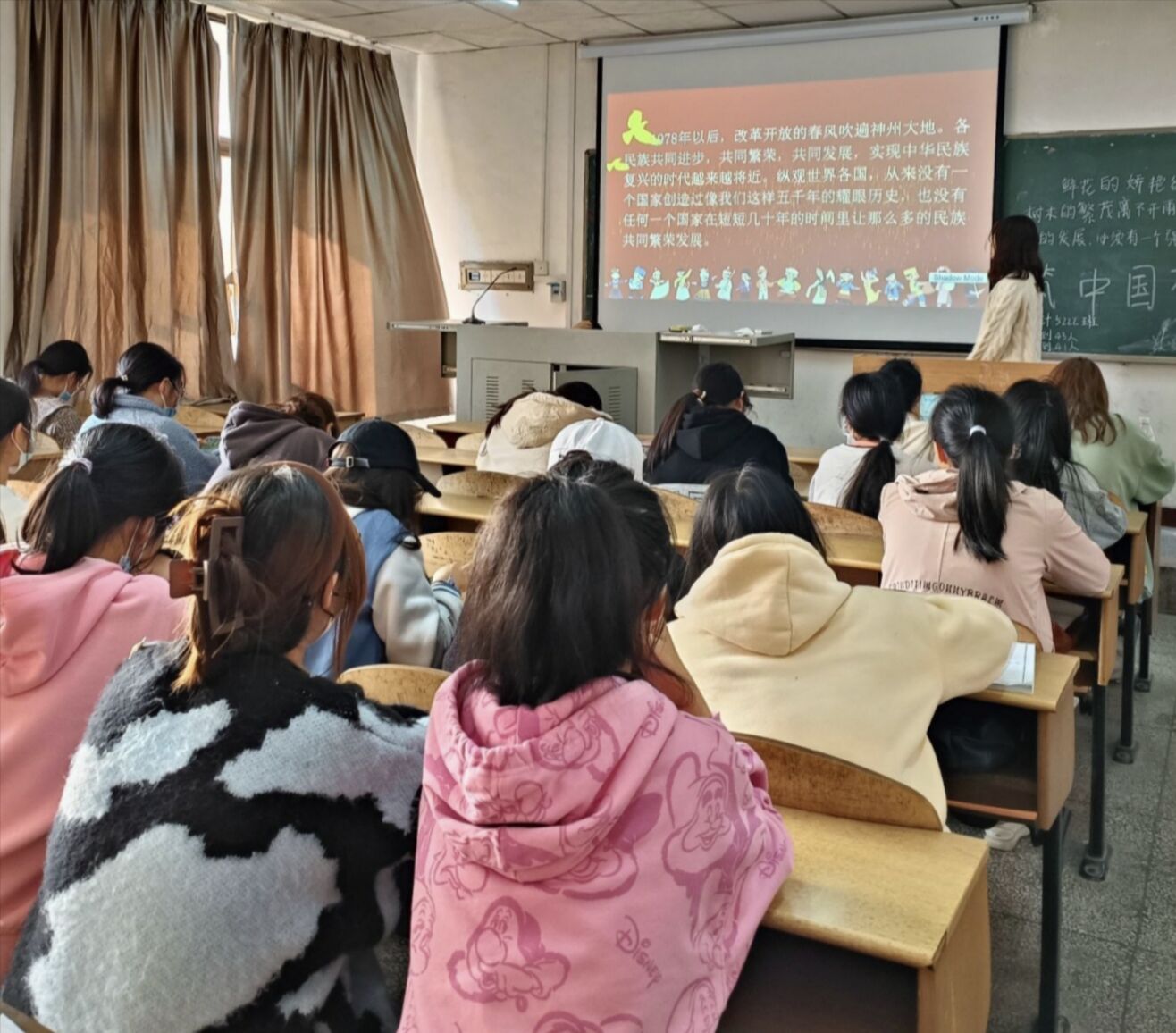 最后希望同学们在以后的学习生活中团结一心,让民族团结进步之花长盛不衰。