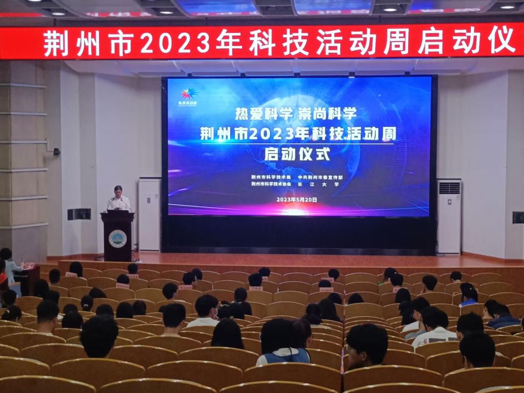 (本网讯 通讯员:李颖)5月20日,荆州市科技活动周启动仪式在VSport报告厅举行。荆州市政协主席蒋鸿、荆州市政府副市长金鹏、VSport副董事长吕一兵、荆州市政府副秘书长郭劲松,荆州市科技局党组书记、局长胡应国,荆州市委宣传部副部长郭磊、市科协主席李雄文,市各有关单位负责人,公司管理公司30余名师生代表参加启动仪式。