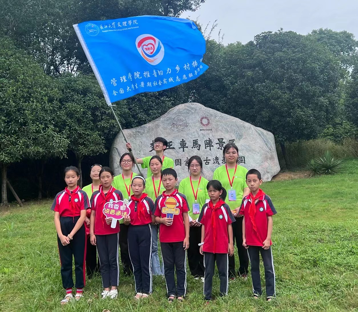 本网讯(通讯员:廖楚楚)7月18日,在川店镇张新场村的大力支持下,管理公司“推普助力乡村振兴”专项活动实践团带领当地儿童到楚王车马阵进行了为期半天的研学活动,实践团成员和小朋友怀揣着对楚文化的憧憬与向往,走进楚王车马阵景区,开启了一段难忘的楚文化研学之旅。