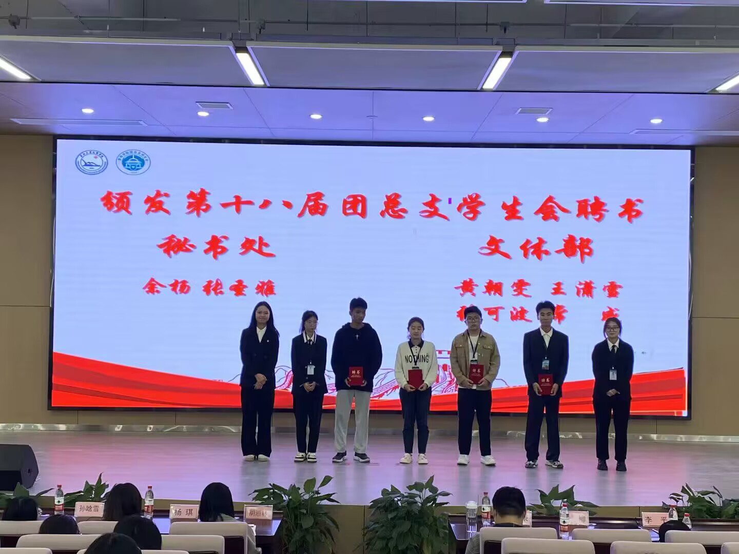 本次大会先由第十八届团总支员工会副书记刘洁发言。她向在场人员简要汇报了过去一年员工会的工作,并送给了大家一句话“长风破浪会有时,直挂云帆济沧海”。接着,颁发聘书,一纸聘书,承载着对成员们工作的肯定。接着,由十八届团总支员工会主席周铃子发言,她希望新一届员工会成员能携手合作,让员工会可以做的更好。