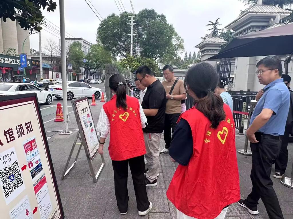 在服务过程中,志愿者们各司其职,协调有序。有的志愿者负责游客疏导,为有需要的游客提供服务;有的志愿者担任迎宾任务,为游客送上最诚挚的微笑。同时提醒游客文明参观,做新时代文明市民。他们温和有礼的话语和耐心切实的服务既维护了馆内秩序,也获得了游客们的赞赏。