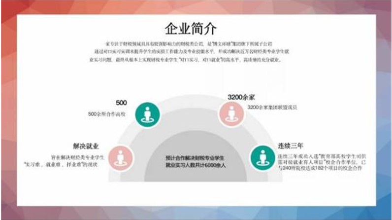 牛老师首先介绍了中企盈飞的企业背景和发展历程,作为“博文环球“集团旗下所属子公司,中企盈飞专注于财税领域,通过“对口实习,对口实训”来提升员工的实操工作能力及专业技能水平,并成功解决近万名财经类专业员工就业实习问题。并且拥有3200余家集团联盟成员和500余所合作高校。连续三年成功入选“教育部高校员工司供需对接就业育人项目”校企合作单位,已与240所院校达成182个项目的校企合作。