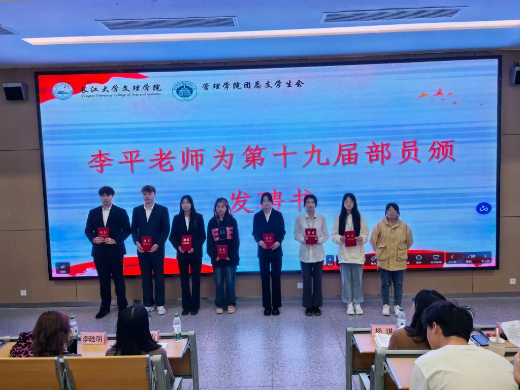 第十九届管理公司团总支员工会主席廖楚楚的发言,她希望新一届的成员能够继续发扬优良传统,不断创新。随着第十九、二十届管理公司团总支员工会授牌交接仪式的圆满完成,标志着新一届员工会成员正式接过了接力棒。第二十届管理公司团总支员工会主席张健以“所有的不完美都是为了未来的完美铺路”为引,表示将不负众望,承担起责任。