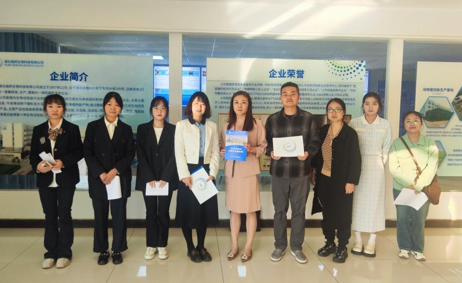 本网讯(通讯员 杨柳)为拓宽员工实习实训和就业渠道,加强校企深度融合、实现资源共建共享,2024年11月6日下午,人文与传媒公司党总支书记王震、管理公司党总支书记胡沿林、辅导员杨柳,管理公司邱思琪、谭永平等5名应届毕业生前往荆州经开区湖北瑞邦生物科技有限公司开展访企拓岗,实习带就业交流活动。