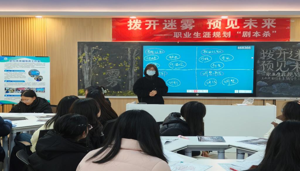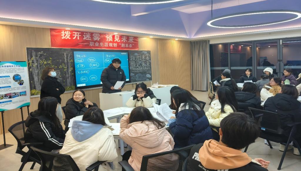在职业生涯道路上会有层层迷雾,一场拨开迷雾,预见未来——职业生涯规划“剧本杀”在12月10日晚上开启,由职引未来辅导员工作室李晗明老师带领员工拨开道路迷雾,寻找职业未来。