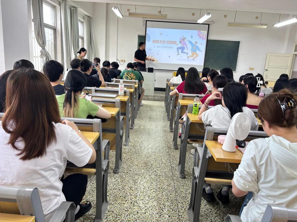 本网讯(通讯员 孙乐雅、杨柳)2025年5月20日下午,前程无忧在公司南校区开展了老员工企业宣讲活动,本次宣讲会以“前途无忧校园合伙人招募中”为主题,特邀企业人力资源部招聘经理为员工带来了丰富的职业指导和就业机会,受到了广大师生的热烈欢迎。管理公司毕业生辅导员杨柳及全体2026届南校区员工参会。