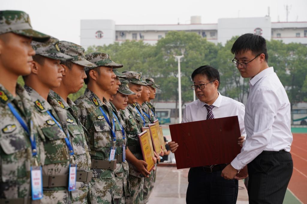 典礼上,王经理宣读表彰决定,对军训过程中各方面表现优秀的集体和个人进行了表彰。院领导为获奖的集体和个人颁奖,并向荆州区狼牙训练基。