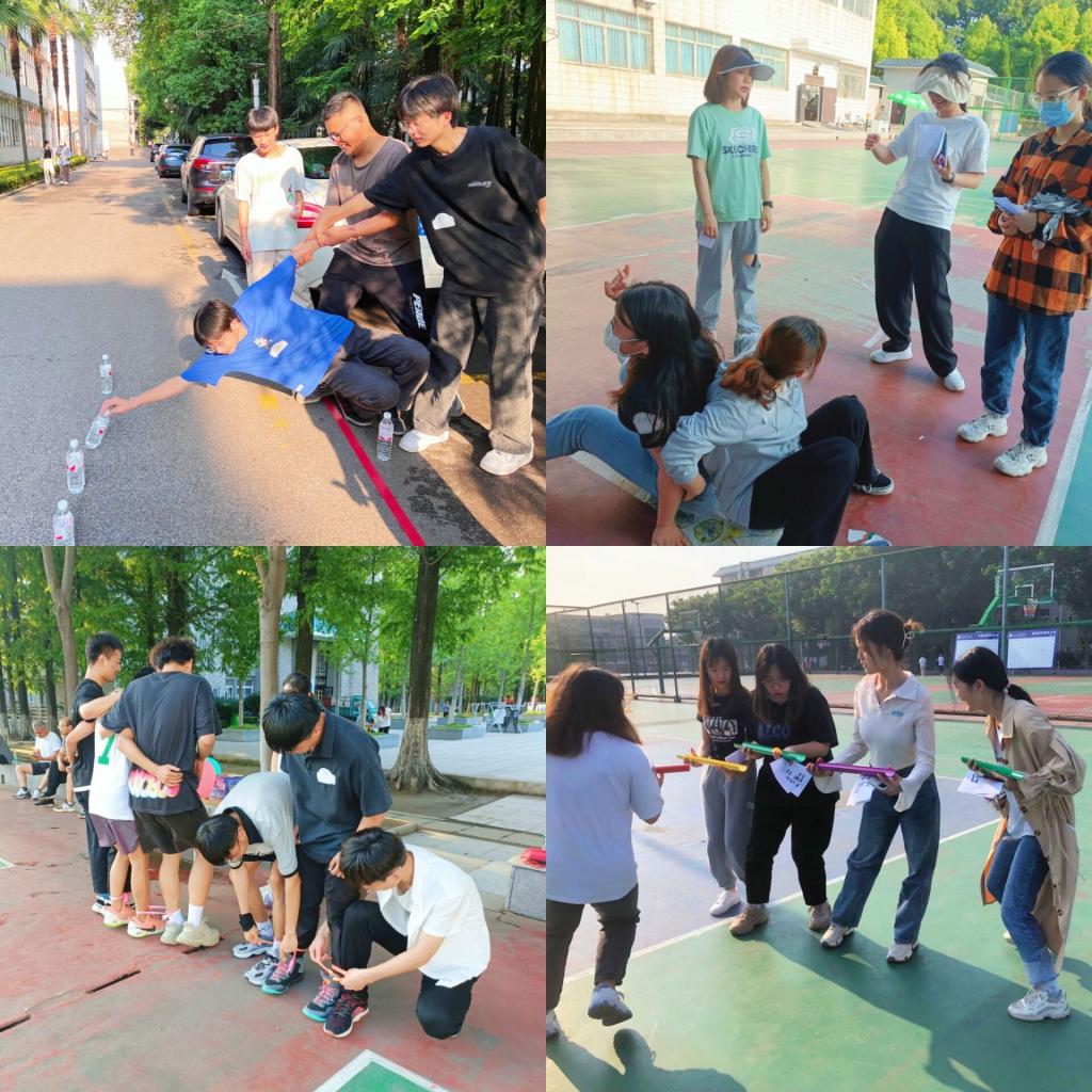 ⽐赛于四点正式开始,同学们根据地图指示寻找⾃⼰的路线。本次⽐赛共分为六8个任务点,有运球接力,两人三足,背运气球,接力投篮,搭桥过河,坐地起身,群龙取水,急速60秒;两处打卡点:KT板拍照,我和TA的故事。各队之间都公平公正的展开“较量”,各队都极力的发挥本团队的聪明才智,突破自己的极限,将团队的⼒量发挥的淋漓尽致。完成一个任务点便由工作人员印上盖章,完成三个任务点并打卡的同学即可获得精美纪念品一个,每一个活动地点还有小零食分发,进一步激发了同学们的积极性。