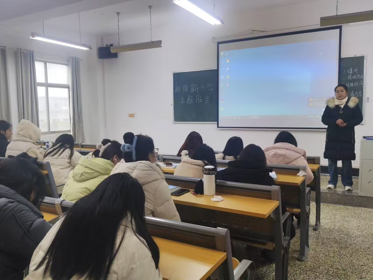 在各班教室中,班主任与辅导员们精心筹备,班主任老师们首先结合当前社会热点与专业发展趋势,引导同学们思考个人职业规划与成长路径,鼓励大家设定清晰的学习目标,合理规划时间,努力提升自我。