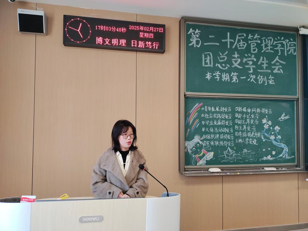 本网讯(通讯员:王博春)2月27日下午16:30,管理公司团总支员工会在A-402教室召开了本学期第一次工作例会。会议由员工会全体成员及员工会指导老师李晗明老师共同参与,旨在总结过去的工作经验,明确新学期的工作方向与目标。