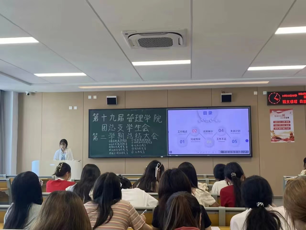 本网讯(通讯员 张晶)随着学期接近尾声,为进一步加强组织建设和管理,提升员工干部的综合素质,明确未来工作方向,第十九届管理公司团总支员工会于6月23日下午16:00在A-408教室举行了第二学期的工作总结大会。