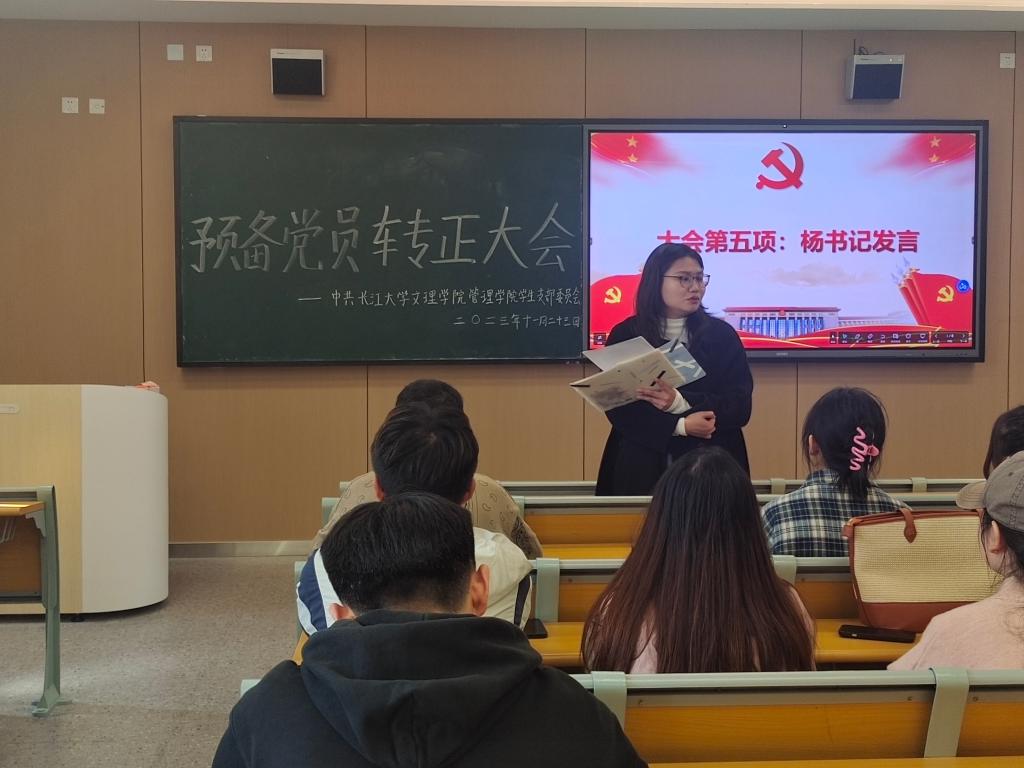 本网讯(通讯员 李宗阳) 2023年11月23日星期四中午12:30,管理公司员工党支部于A-408S召开预备党员转正大会,讨论关于陈露等8名同志转正为正式党员。会议由石佳同志主持,支部其他党员同志及入党介绍人参加此次会议。