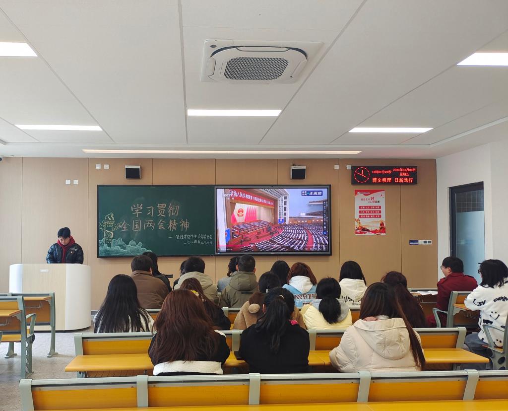 本网讯(通讯员 陈露)为提高党员同志思想政治水平,了解国家发展大事,激励大家以更昂扬的斗志和更务实的行动投入到工作和学习中。管理公司员工党支部于3月8日下午16:00在A-408开展“全国两会政府工作报告学习”活动,组织观看全国两会开幕式,集中学习政府工作报告内容。管理公司员工党支部全体党员同志和积极分子参加。