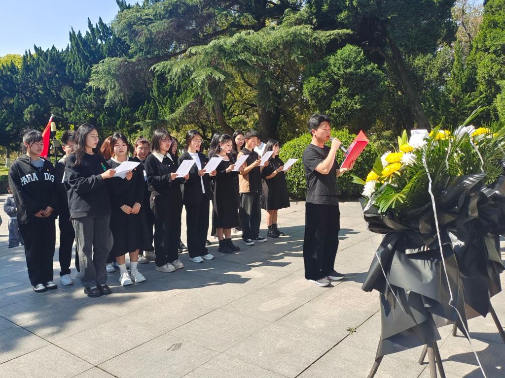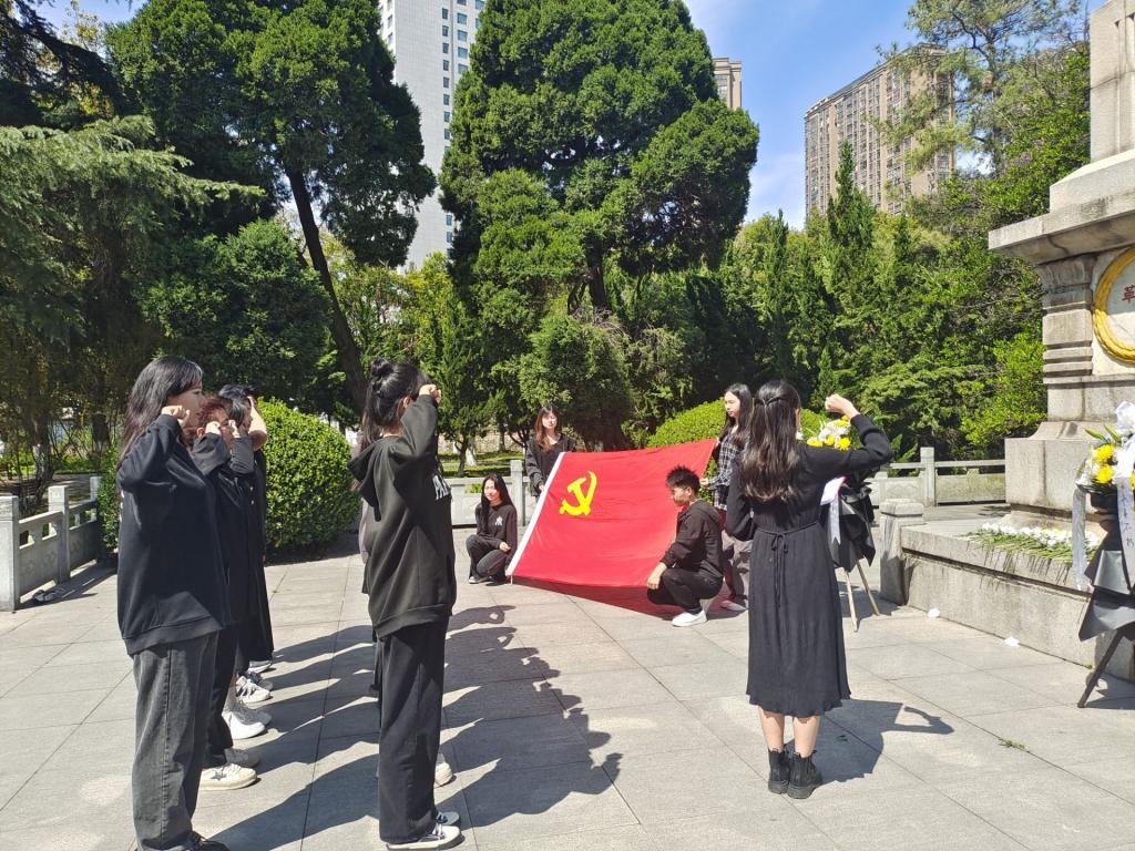 在革命烈士纪念碑前,全体成员怀着沉重而庄严的心情,向革命烈士纪念碑献花、默哀沉思,追忆先烈功勋,表达对革命先烈的无限敬仰和缅怀之情。随后,在党旗和纪念碑前,大家以集体宣誓的方式,重温了入党誓词。接着,全体党员同志进行诗朗诵《清明祭英烈》,大家的朗诵抑扬顿挫,一字一句,载满了深情厚爱。在万物清明的节日里,党员同志们没有忘记为民族独立解放而牺牲的革命先烈,没有忘记为国家繁荣富强而献身的各战线英雄。最后,大家参观了烈士陵园,认真学习革命先烈的英雄事迹,感悟革命先烈为了人民抛头颅、洒热血、不怕牺牲的大无畏革命精神。