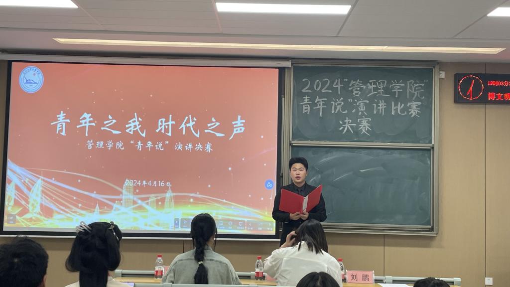 本网讯(通讯员陈露)引领青年员工认识自己、坚定信念、传颂榜样精神,努力成长为有理想、敢担当、能吃苦、肯奋斗的新时代好青年,4月23日晚上管理公司员工党支部在C-423举办青年说演讲比赛决赛,此次比赛由吴鑫瑞同志主持,管理公司员工党支部书记杨琪、辅导员孙晗雪担任评委、10名比赛选手参赛。