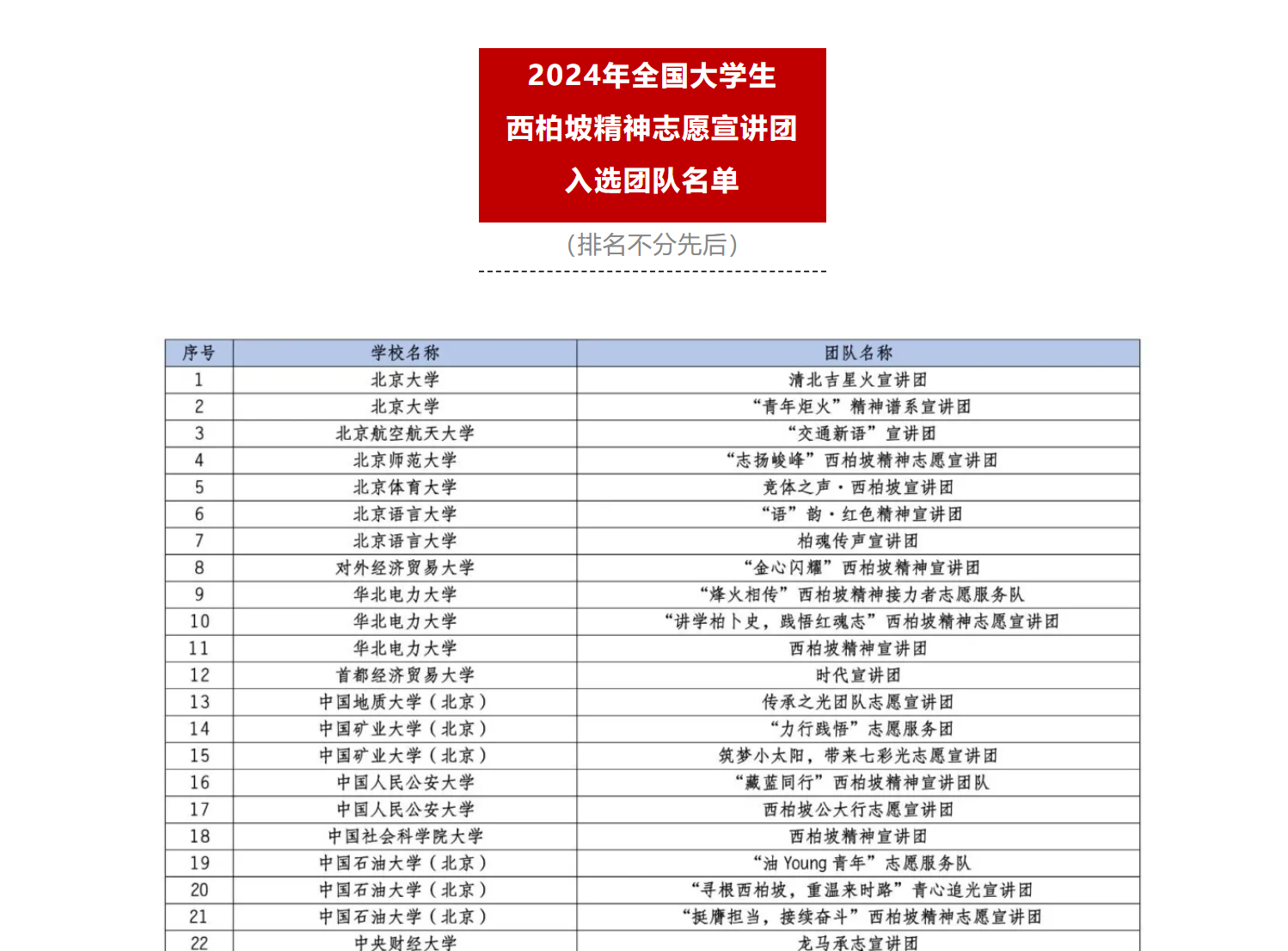 本网讯(通讯员 李宗阳)近日,中国青年志愿者微信公众号发布《2024年全国老员工西柏坡精神志愿宣讲团入选团队名单》,管理公司红心向党宣讲团成功入选。