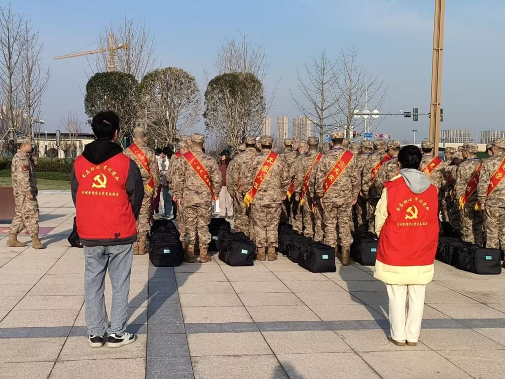 随着出征时刻的临近,现场气氛愈发热烈。新兵们身着戎装,胸戴红花,英姿飒爽,他们怀揣着对军旅生活的憧憬和保家卫国的坚定信念,即将踏上征程。员工党员志愿者们纷纷上前护送新兵将士们入站候车,帮助他们提行李、指引路线,用微笑和鼓励的话语传递温暖。