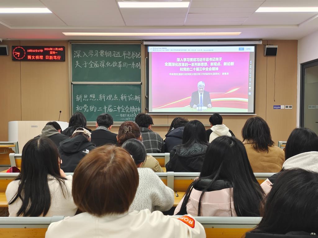 本网讯(通讯员 吴宝兰 万学君)管理公司员工党支部于11月26日晚18:30,在教学楼A408召开十一月主题党日活动,管理公司员工党支部全体党员参加,此次会议的主要内容是学习习近平总书记考察湖北重要讲话精神并开展深入学习贯彻党的二十届三中全会精神交流研讨会。会议由李琪同志主持。