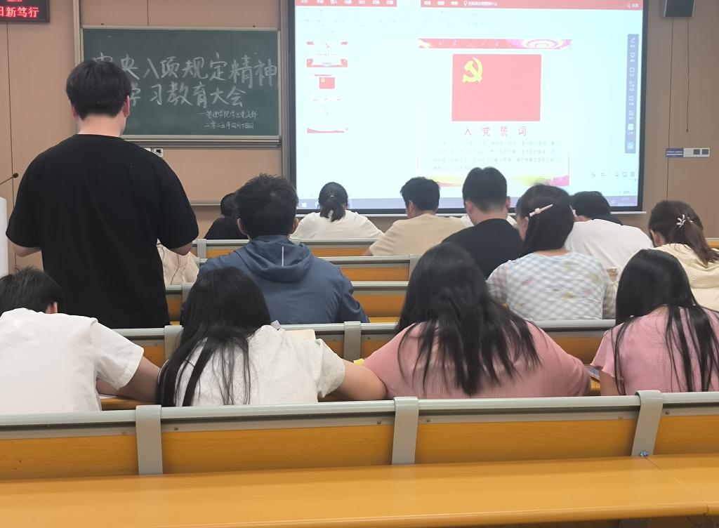 在本次的中央八项规定精神的集体学习中,我们也认识到,作为员工党员,践行中央八项规定及其实施细则精神,既是政治责任,也是锤炼党性、服务群众的重要实践路径。同时,我们需以“小切口推动大变革”的自觉,将中央八项规定精神融入学习生活点滴,既做“严于律己”的践行者,又做“带动他人”的引领者,为新时代青年先锋队伍建设筑牢作风保障。通过持续深化“学查改”一体推进,真正让中央八项规定精神在校园落地生根。