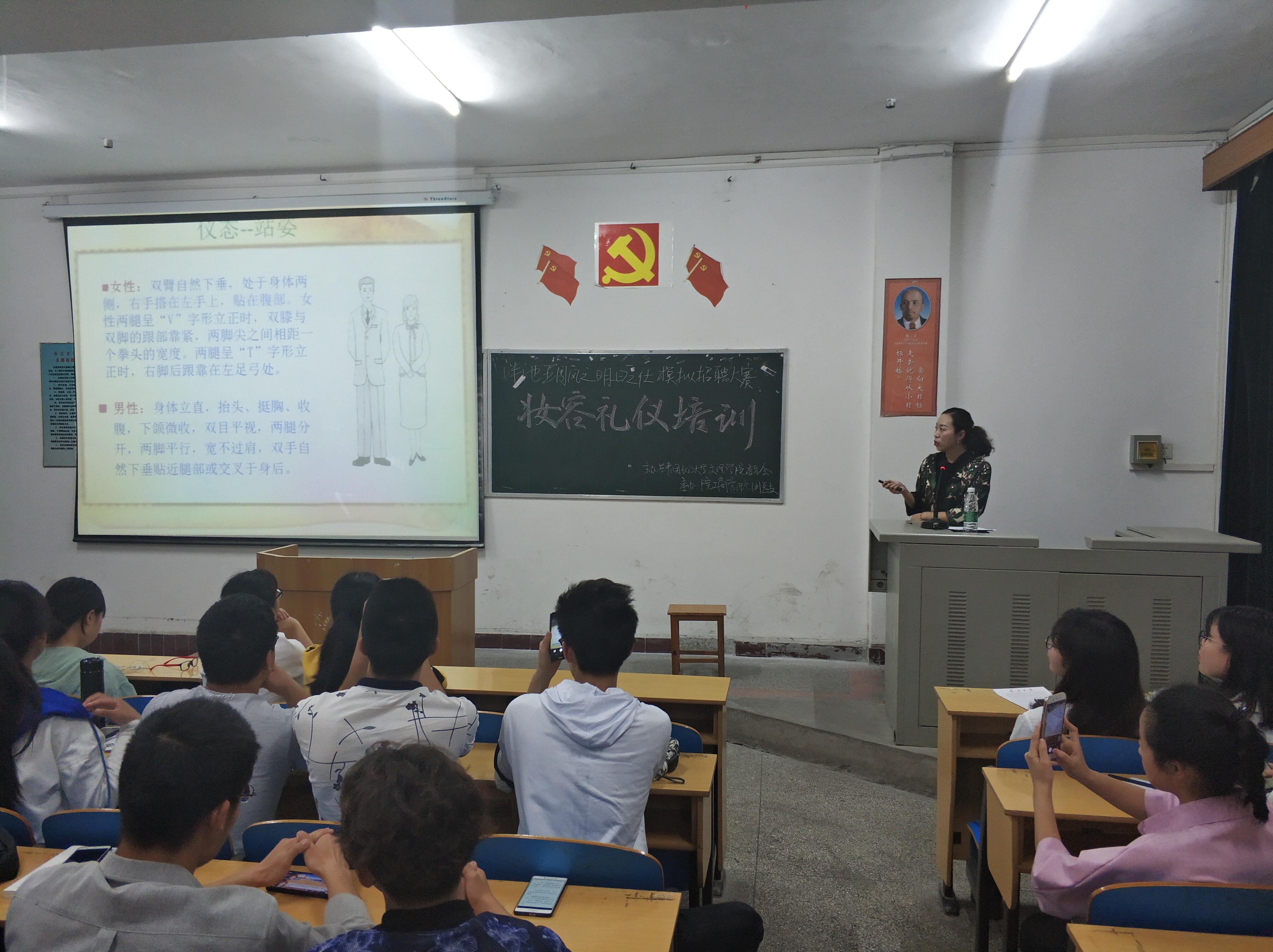 201842819:00于一教414开展了就业礼仪妆容培训,本次培训活动是针对152019届毕业生以及系团总支承办的科技文化节“明日之仕”模拟招聘大赛复赛选手。培训主讲人是我系辅导员涂晓洁老师。