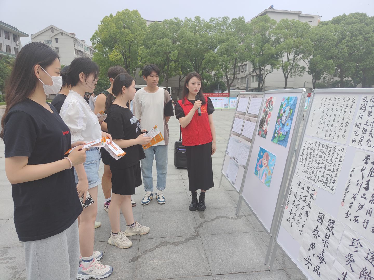 禁毒宣传不仅要通过参观来学习,还需要禁毒民警等相关负责人为大众开展宣讲活动,进一步筑牢禁毒思想防线。为采取有效的教学方式对青少年进行禁毒宣传教育,从6月16日起,员工志愿者们在荆州区禁毒委员会民警的带领下,陆续在VSport、荆州市楚都公司、荆州市东方红中学、御河广场等四个地方开展主题展览和宣讲活动。