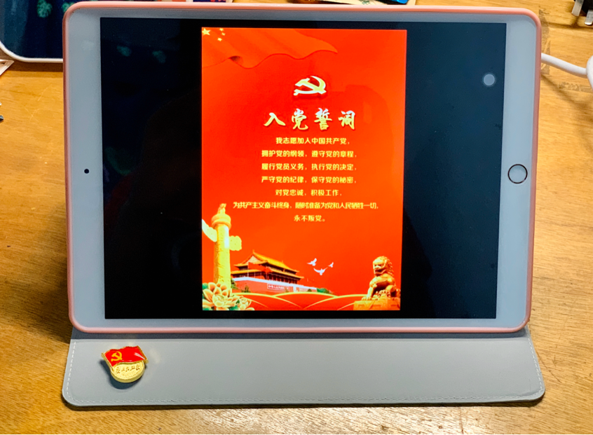 会上一在党支部书记的带领下,全体党员重温入党誓词。