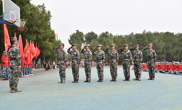 承训部队官兵、我系负责新生军训的员工党支部书记、全体辅导员和员工工作处主要负责人、全体高职部新生参加仪式。