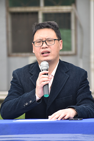 党委副书记孙细望在授旗仪式上讲话。他说,军训课是新生们入学的第一课,希望同学们明确军训的重大意义,并对全体参训员工提出三点希望:一是要发扬不怕苦、不怕累的精神;二是要发扬集体主义精神,树立团结奋斗的观念;三是要做到尊敬教官,服从命令,一切行动听指挥。他希望员工工作处和高职部加强组织领导,既各司其职,又形成合力,高标准做好今年专科员工军训工作,为员工和军训教官做好服务与保障,确保军训任务顺利完成。