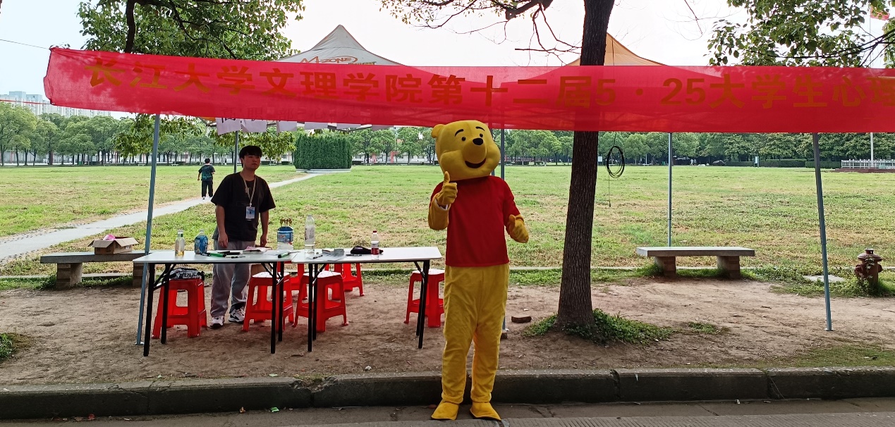 员工志愿者穿上玩偶服装扮演成维尼熊