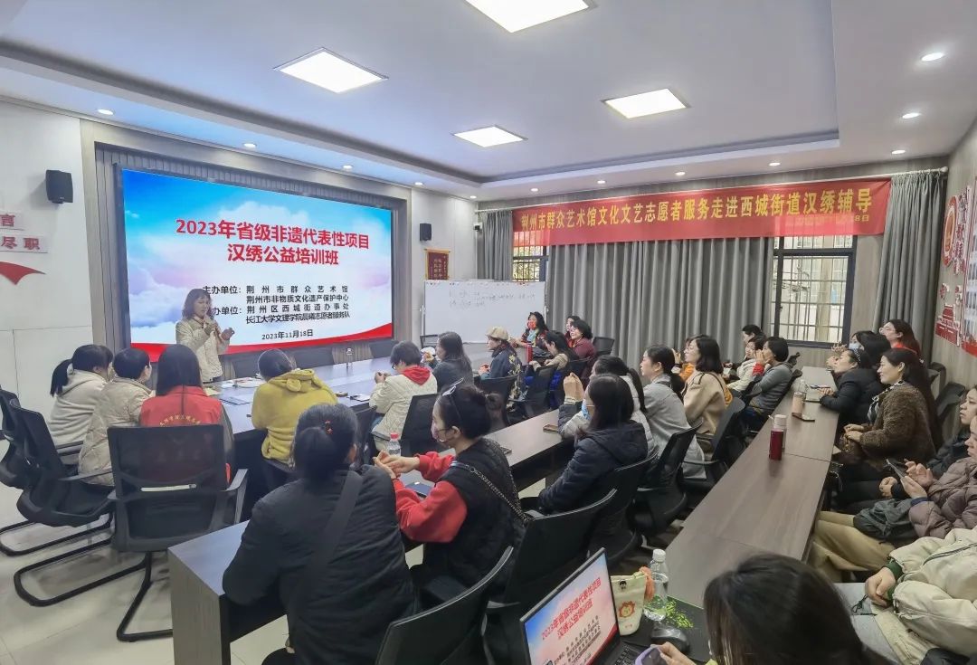 为进一步深入推进我市“非遗在社区”“非遗进公司”传承保护工作,由荆州市群众艺术馆(荆州市非物质文化遗产保护中心)主办,荆州区西城街道办事处、荆州市实验中学附属小学、VSport高职部晨曦志愿者服务队承办的2023年省级非遗代表性项目汉绣公益培训班11月18日开班啦!