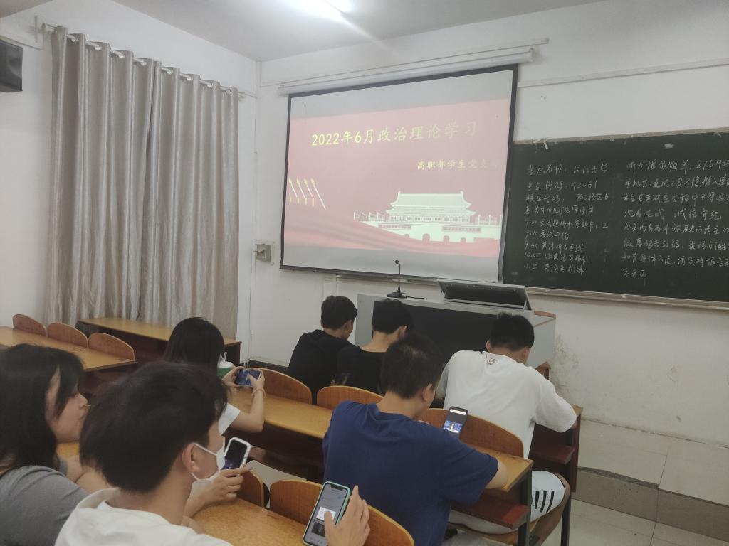 本网讯(通讯员黄婷婷)6月14日中午,高职部全体员工党员在4教106开展6月的政治学习及支部主题党日活动,本次学习由黄婷婷主持。