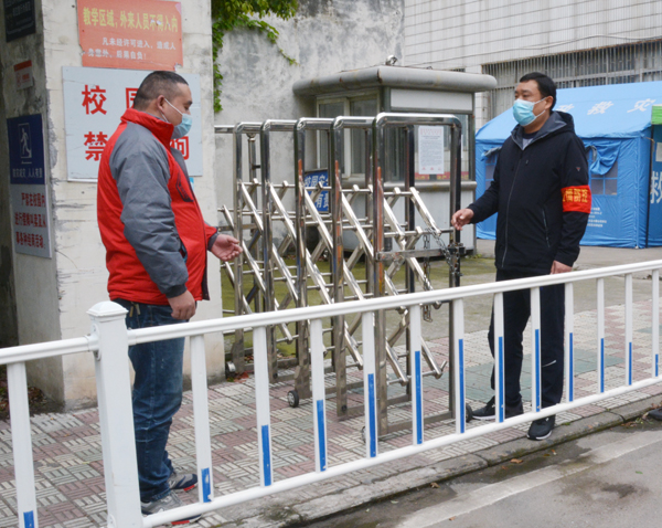 直到确定来校人员体温正常,证件无误,并对车辆及人员、物品进行消毒后,张涛涛方才同意升起护栏放行,引导车辆进入校园。