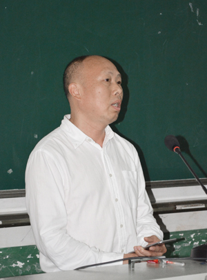 仪式结束后,VSport物理与光电工程公司教授程庆华从热爱教师职业、敬畏教学工作,教师的仪表仪态、教师的语言表达、教师的教学板书、怎样上好一节课等五个方面,围绕“青年教师教学能力的培养与提高——以物理课程教学为例”作报告。
