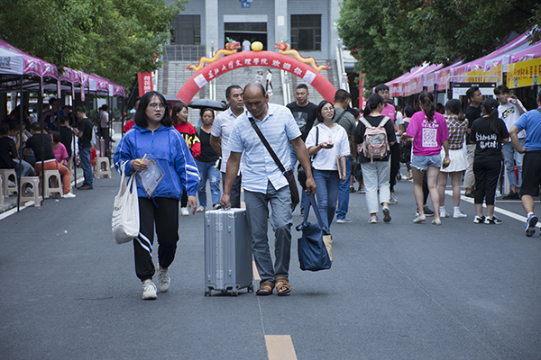 公司今年分两个校区迎新,迎新点分别设在城中校区2教前主干道和西校区风华园篮球场前主干道上。校园外,人群熙攘、秩序井然,校园内,拱门高悬、横幅耀眼,师生喜笑颜开,呈现出热烈喜庆的迎新景象。