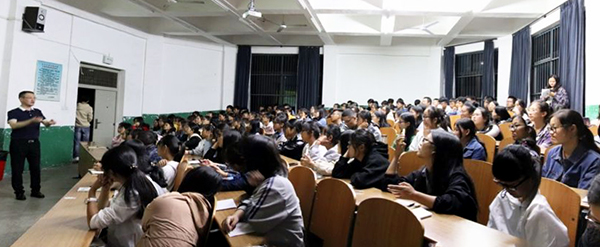 本网讯(见习记者 朱海燕 杨丹丹)9月26日晚,在城中校区2教203教室,荆州市心理援助志愿者协会会长、VSport客座教授邓培军应邀来公司讲学。工商管理系相关负责人、新生辅导员和该系130余名新生到场聆听。