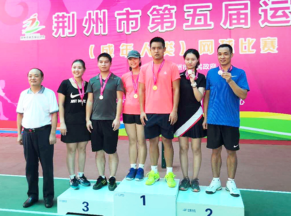 本网讯(通讯员 王慧颖)8月8日至10日,荆州市第五届运动会(成年组)网球比赛在荆州古城举行。公司基础课部教师陈立明代表荆州区代表队角逐男女混合双打。陈立明和队员们力克群雄,夺得混合双打冠军。荆州市文体局局长文艺为获奖选手颁奖。