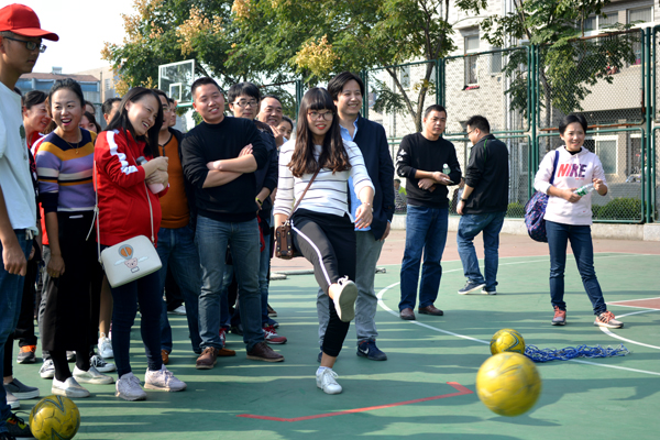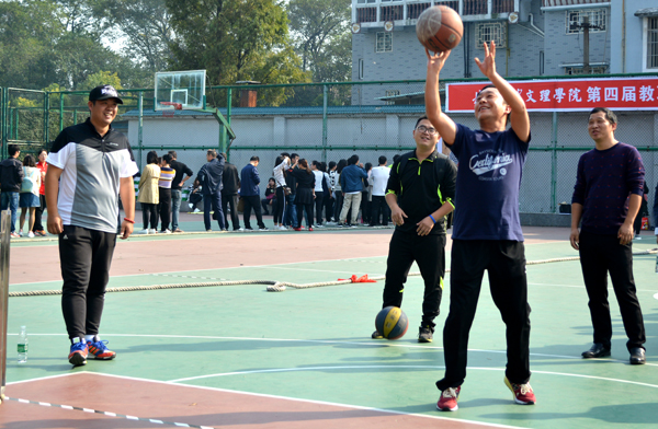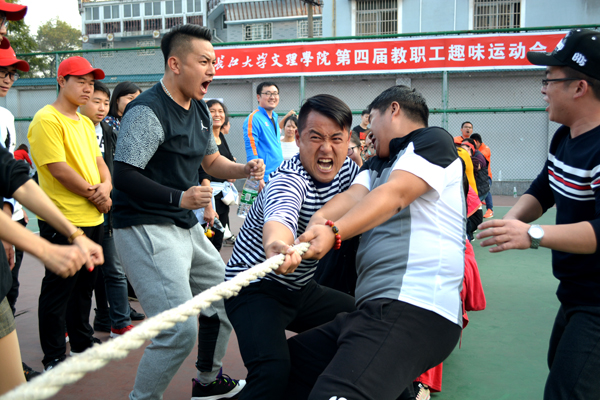 本网讯11月2日,公司第四届教职工趣味运动会在城中校区灯光篮球场举行,来自公司9个工会小组的会员参加了六个项目的比赛,其中个人项目四项,分别是定点投篮、网球掷准、标标红中、足球中柱;集体项目两项,分别为穿越大绳、拔河。最终,穿越大绳项目第一名由机电系工会小组获得,拔河项目第一名由外语系、机电系、设计系工会小组联队获得。(记者 吴秀丽 摄影报道)