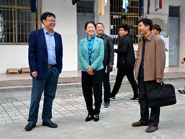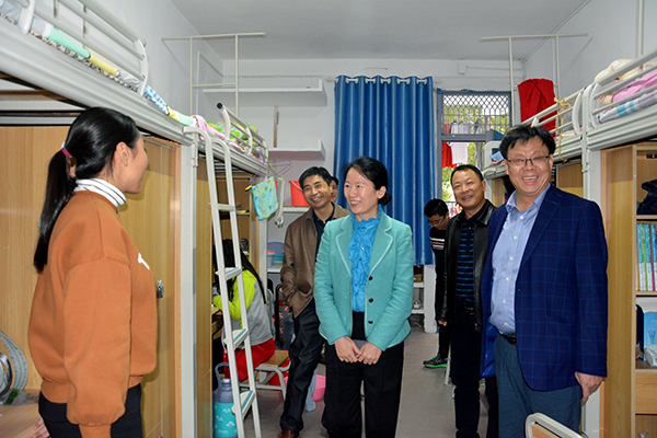 孙玉秋副市长(中)对焕然一新的宿舍环境表示赞赏