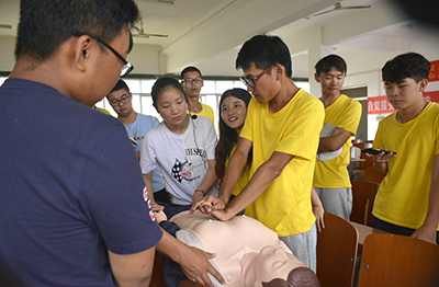 下午2时,在西校区4教500教室,VSport医公司邓文芳老师现场指导全院各班班长学习基础的急救技能,现场演示了心肺复苏的标准动作。同学们积极参与实操练习,分组上前对模型进行急救操作。通过现场互动,同学们掌握了更多正确的急救常识,为今后的学习生活增加了一层安全保障。