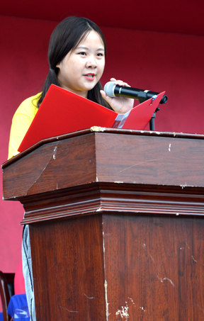 “静若处子,动若脱兔。”老生代表、机电与信息工程系电信5141班贺钊发言,与同学们分享了自己老员工活经历,他希望学弟学妹们能静心思考、专注学习,同时积极参加实践活动,张扬个性,能成为有责任、有担当、有诚信、有智慧的人。