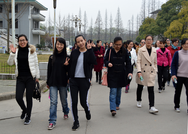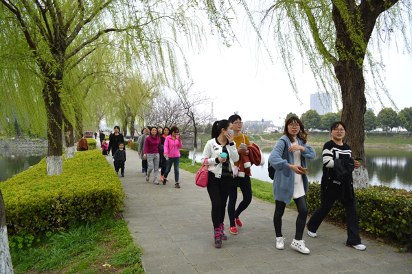 此次“迎春健康行“活动起于城中校区七舍前,途经三义街、新北门和小北门,绕荆州古城墙(外环),终点在明月公园屈原像前,活动行程约为四公里。来自全院10个工会小组的女教职工参加活动。