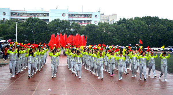 本网讯(记者 吴秀丽)10月23日上午,在公司第十二届运动会开幕式上,由院国旗护卫队组成的国旗方阵和院旗方阵、由医药与护理系员工组成的鲜花方阵、由机电与信息工程系员工组成的红旗方阵、由师生代表组成的裁判员方阵以及7个系部运动员方阵依次亮相。
